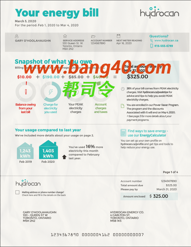 加拿大安大略水电费账单模板 photoshop 用于: